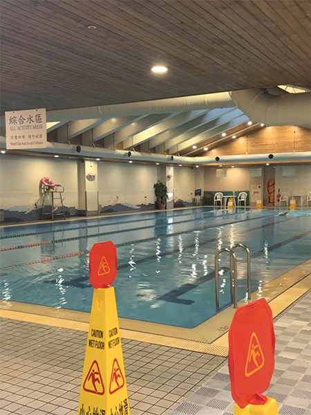 天井が一部、ガラスの吹き抜けになっていて背泳ぎをしたくなる。台北市民プールより、水質がいいなと思った。