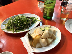注文票はなく、壁のメニューを見て口頭で注文するスタイル。友人がスムーズに注文してくれたが、サービスのおばさんは少し日本語を話せるので、指差しでもなんとかなりそうな感じだった。