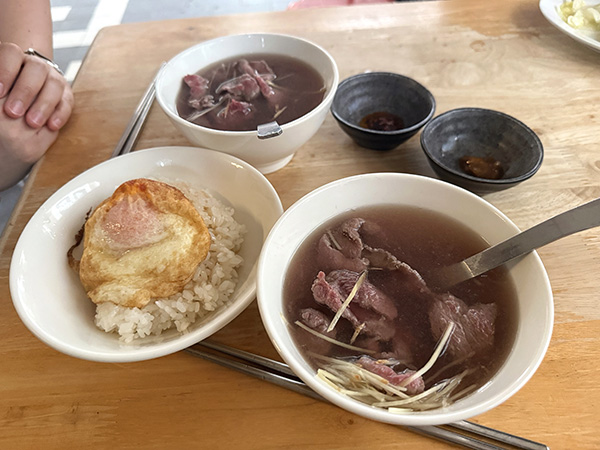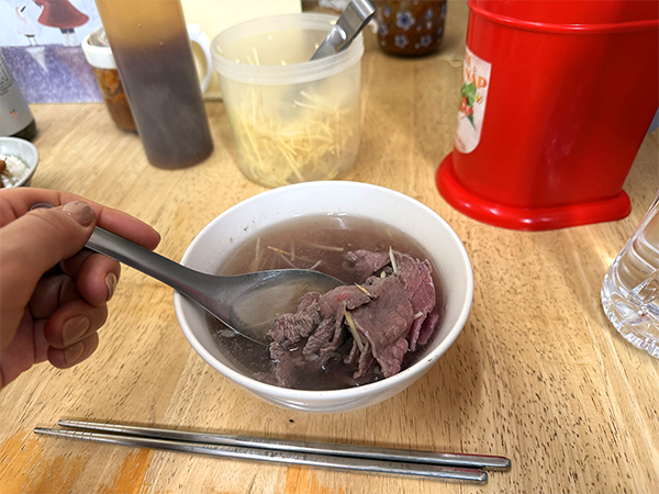 牛肉湯はあまり写真映えはしないのだが、めちゃくちゃ美味しい。レア気味の牛肉を噛み締める感じがたまらない。さっぱりとした旨味の多いスープがいい。