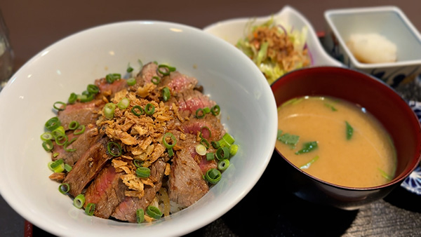 すき焼きと迷ったのですが、ガッツリ行きたい気持ちからステーキ丼を注文。